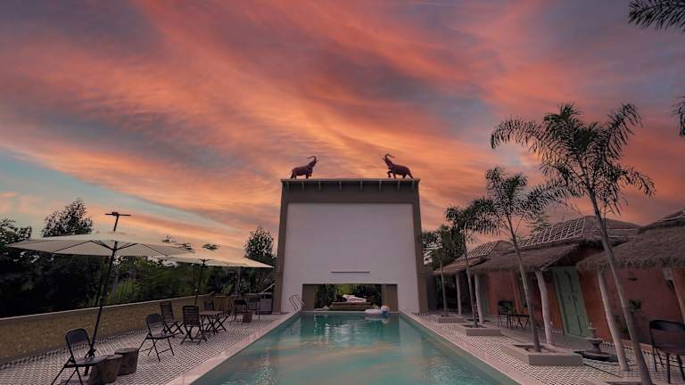 Das Gulmohar Eco Village Resort bietet kostenloses Wifi und einen Garten mit einer Terrasse. Es stehen verschiedene Annehmlichkeiten zur Verfügung, darunter ein Innenpool, eine Sauna und ein Whirlpool. Zudem gibt es einen Kinderspielplatz und eine gemütliche Gemeinschaftslounge für die Gäste.