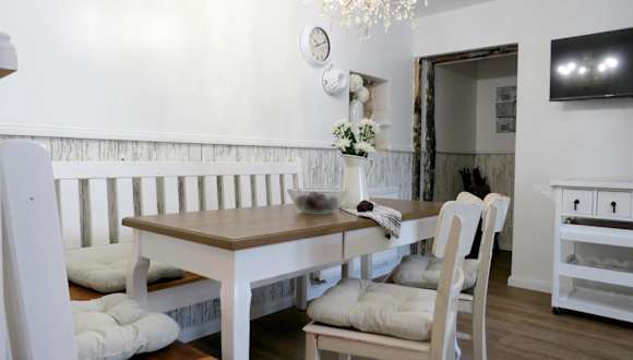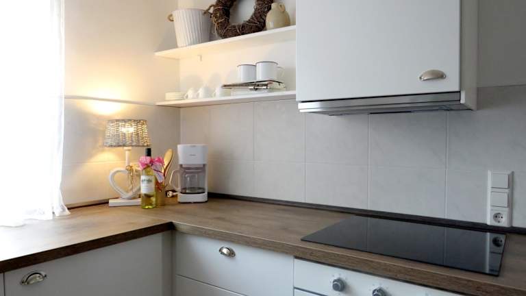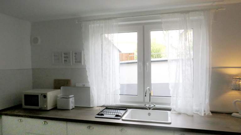 Die Ferienwohnung verfügt über zwei Schlafzimmer und eine vollständig ausgestattete Küche, die mit einem Kühlschrank, einem Geschirrspüler sowie einer Kaffeemaschine eingerichtet ist. Handtücher und Bettwäsche werden zur Verfügung gestellt.