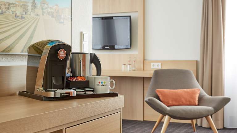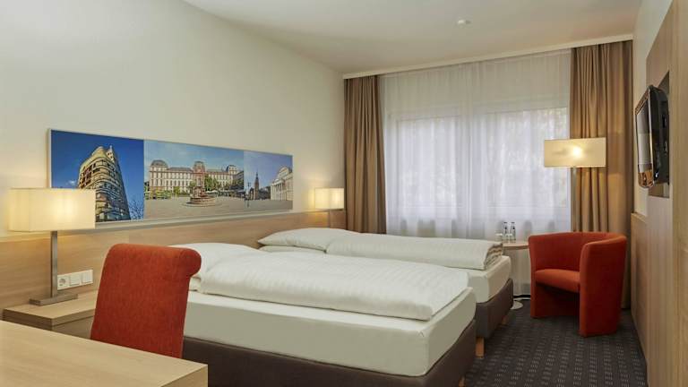 Das zentral und verkehrsgünstig gelegene H+ Hotel Darmstadt verfügt über 166 modern ausgestattete Zimmer. Schallisolierte Fenster, Klimaanlage, inklusives WLAN und Flachbildfernseher mit Sky Sports gehören zu den Annehmlichkeiten in allen Zimmern. Das Restaurant "Gaumenfreund" und die Hotelbar runden das Angebot ab und bieten vom reichhaltigen Frühstücksbuffet am Morgen bis zum Feierabend Cocktail am Abend alles für das leibliche Wohl. Parkplätze sind in der Tiefgarage gegen Aufpreis vorhanden.