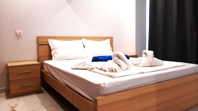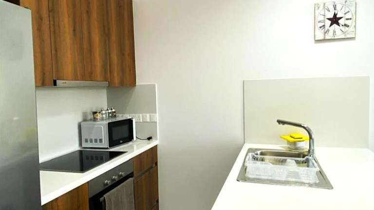 Die Ferienwohnung besteht aus zwei Schlafzimmern und einem Wohnzimmer. Sie ist mit einer voll ausgestatteten Küche, einem Kühlschrank und einer Kaffeemaschine ausgestattet. Es gibt zudem zwei Badezimmer mit einer Dusche und kostenlosen Pflegeprodukten. Handtücher und Bettwäsche werden bereitgestellt.