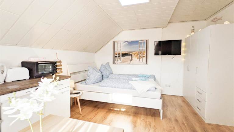 Die Ferienwohnung verfügt über 1 Schlafzimmer sowie eine voll ausgestattete Küche, die mit einem Kühlschrank und einem Geschirrspüler ausgestattet ist. Des Weiteren bietet die Unterkunft ein Badezimmer mit einer Dusche und einem Haartrockner. Handtücher und Bettwäsche werden bereitgestellt.