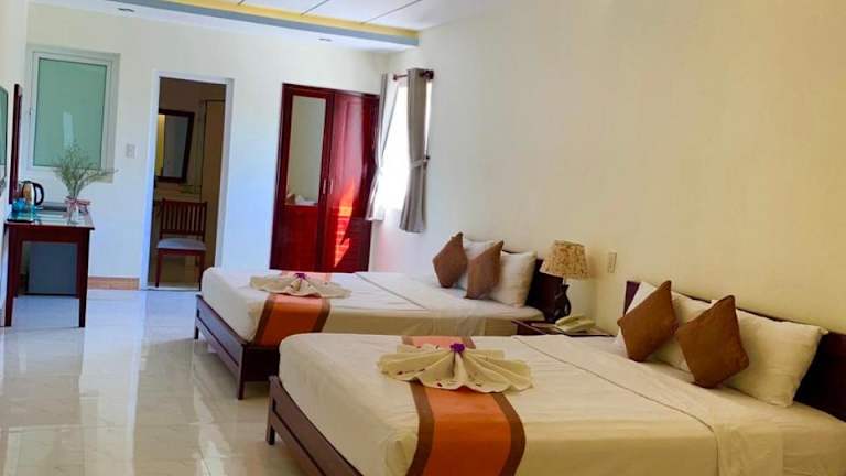 Das Ha Anh Hotel befindet sich in Mui Ne, nur 50 m vom öffentlichen Strand entfernt. In der unmittelbaren Umgebung finden sich zahlreiche Restaurants, Bars und Cafés. Zudem ist das Fischerdorf Mui Ne etwa 7 km entfernt. Die Red Sand Dune liegt 12 km und die Stadt Phan Thiet 15 km vom Hotel entfernt.