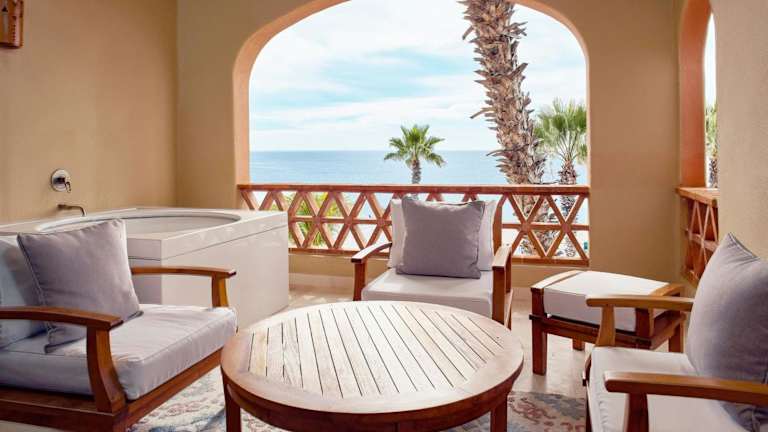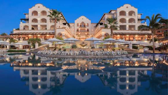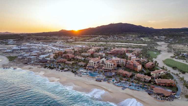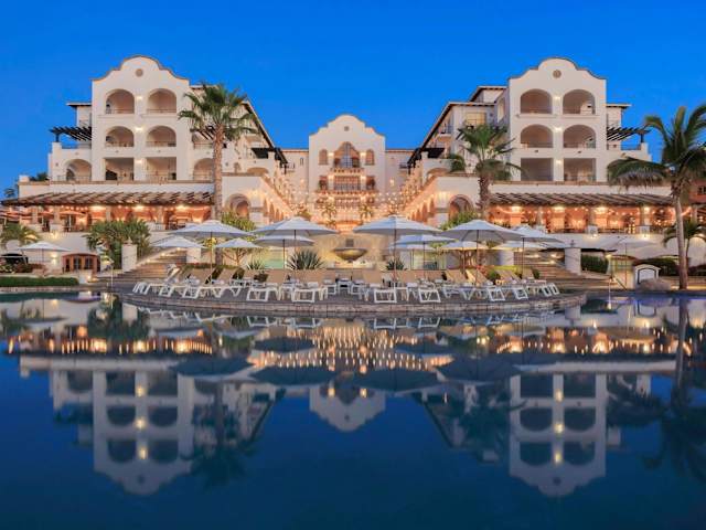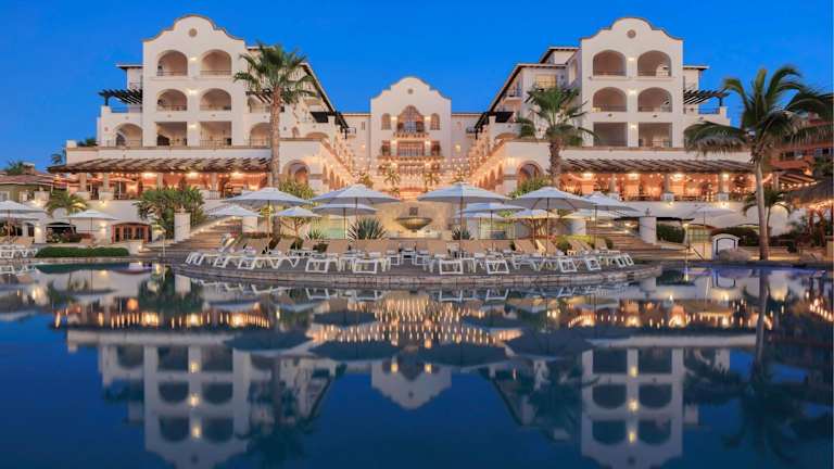 Das Hotel befindet sich in Cabo del Sol, eingebettet in üppige, tropische Gärten mit Blick auf den eigenen Strand am Smaragdmeer von Cortez. Die Umgebung bietet eine angenehme Mischung aus Ruhe und Zugang zu Aktivitäten im Freien.