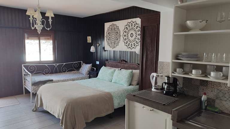 Jede Wohneinheit ist ausgestattet mit einer Terrasse, die einen schönen Blick auf die Berge bietet. Zu den Einrichtungen gehören ein Satelliten-Flachbild-TV sowie eine gut ausgestattete Küche mit einem Kühlschrank, einer Mikrowelle, einer Herdplatte, einer Kaffeemaschine und einem Wasserkocher. Das eigene Badezimmer verfügt über eine Dusche und einen Haartrockner.