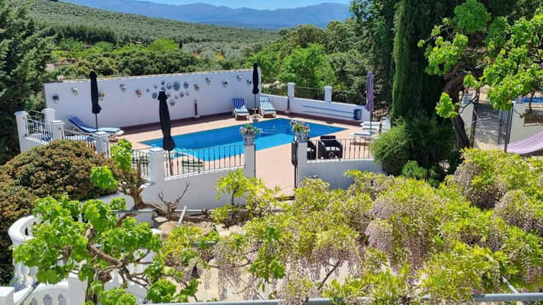 Die Hacienda la Suerte liegt in der andalusischen Landschaft von Villanueva de Tapia, umgeben von Bergblick. Die Unterkunft befindet sich etwa 54 km vom Flughafen Malaga entfernt.