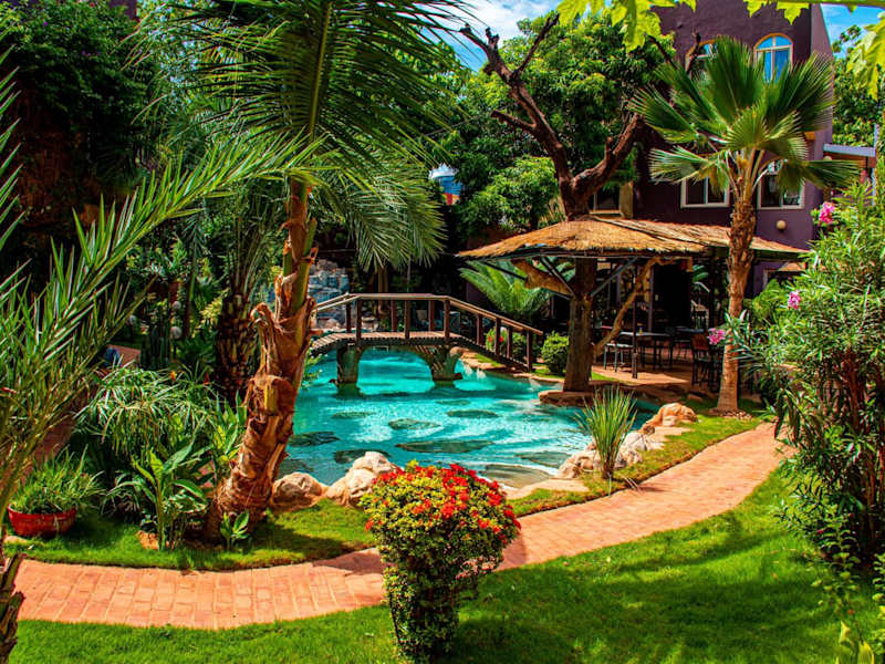 Die Unterkunft Hacienda Ouaga bietet eine heimelige Atmosphäre und eine Vielzahl an Annehmlichkeiten. Gäste können sich auf ein Fitnesscenter, einen Garten und eine Sonnenterrasse mit Pool freuen. Zudem steht ein à la carte Frühstück zur Verfügung. Eine rund um die Uhr besetzte Rezeption gewährleistet einen angenehmen Aufenthalt, ebenso wie der Zimmerservice und Flughafentransfers.