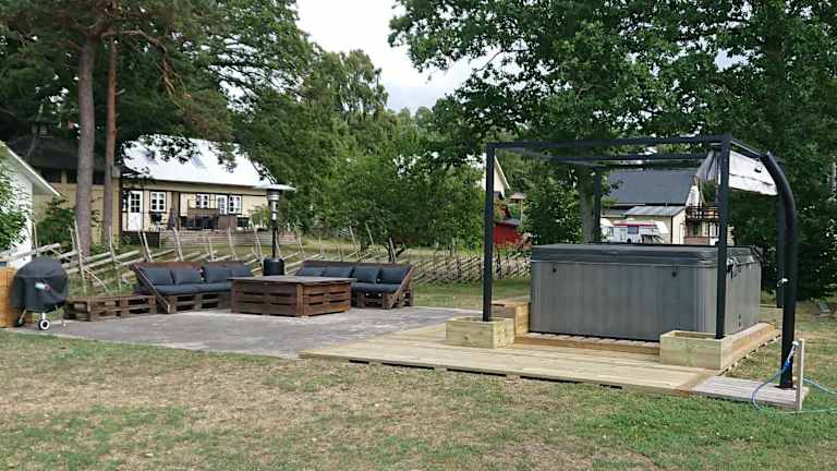 Das Ferienhaus bietet einen Garten, in dem Sie sich entspannen können. Außerdem steht Ihnen ein Grill zur Verfügung, um gemütliche Grillabende im Freien zu veranstalten. Wenn Sie die Umgebung erkunden möchten, können Sie sich im Härlig stuga vid havet Fahrräder ausleihen. Genießen Sie Aktivitäten wie Wandern, Radfahren oder Golfen in der malerischen Umgebung.