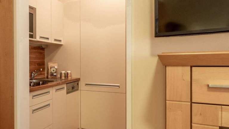 Das Appartement umfasst ein Schlafzimmer und ist mit allem Notwendigen für einen angenehmen Aufenthalt ausgestattet. Die Küche verfügt über moderne Geräte, welche die Zubereitung eigener Mahlzeiten ermöglichen.