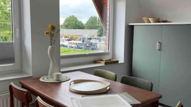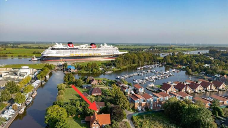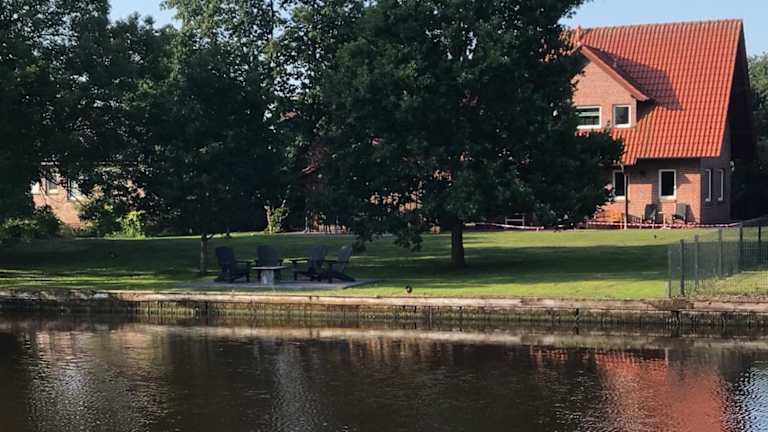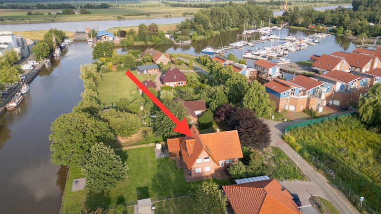 Die Unterkunft befindet sich in Weener, malerisch direkt am Wasser gelegen. Die Umgebung bietet eine ruhige Atmosphäre und ist ideal für Naturfreunde.