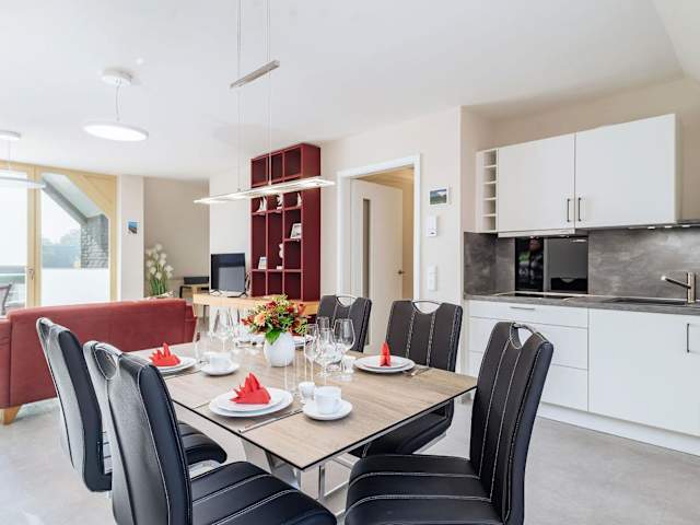 Die Ferienwohnung verfügt über 2 Schlafzimmer und eine Küchenzeile, ausgestattet mit einem Kühlschrank und einem Geschirrspüler. Es gibt ein Badezimmer mit einer Dusche, einem Haartrockner und einer Waschmaschine. Handtücher und Bettwäsche werden zur Verfügung gestellt.