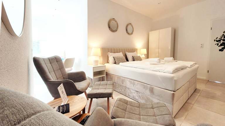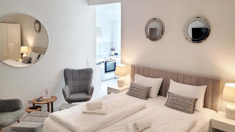 Die Unterkunft HafenPerle Neustadt - Deine maritime Oase an der Küste von "Momentic" ist gelegen in Neustadt in Holstein, nur 1 km vom Strand Neustadt entfernt. Die Ferienwohnung befindet sich in der Nähe des HANSA-PARKs (6,5 km) und des Hauptbahnhofs Plön (31 km). Der Hauptbahnhof Lübeck liegt 34 km entfernt, während der nächstgelegene Flughafen, der Flughafen Lübeck, 42 km von der Unterkunft entfernt ist.