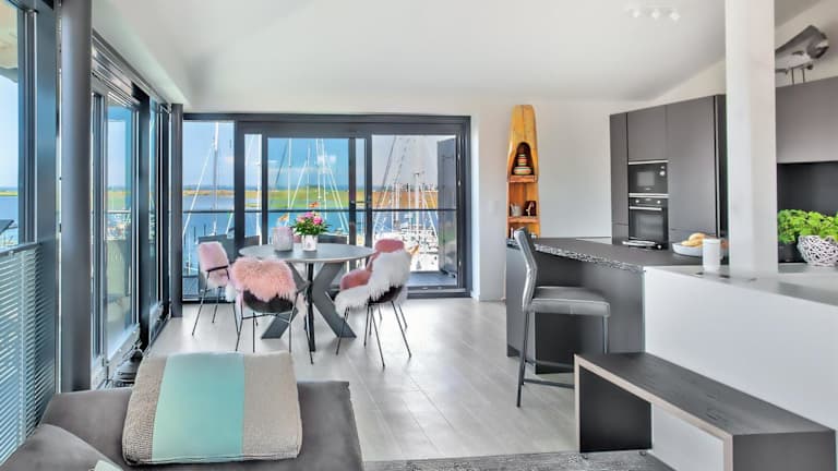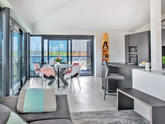 Hafenspitze No1 ist eine Ferienwohnung, die Übernachtungsmöglichkeiten mit herrlichem Seeblick anbietet. Es handelt sich um eine Nichtraucherunterkunft, die sowohl eine Sonnenterrasse als auch eine Terrasse im Freien hat.