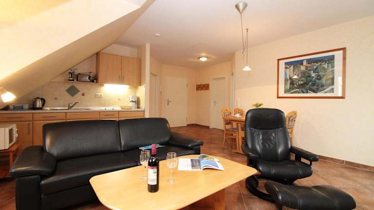 Die Haffplatz Ferienwohnung 10 bietet Übernachtungsmöglichkeiten in einer heimeligen Ferienwohnung. Die Unterkunft verfügt über einen Balkon sowie kostenfreies Wifi und ist für Nichtraucher ausgelegt. Es werden Handtücher und Bettwäsche zur Verfügung gestellt. Die Ferienwohnung ist für einen Aufenthalt von mindestens zwei Nächten geeignet und richtet sich nicht an Junggesellen- oder Junggesellinnenabschiede. Die Höchstaltergrenze für den Check-in liegt bei 99 Jahren, während das Mindestalter für den Check-in 18 Jahre beträgt.