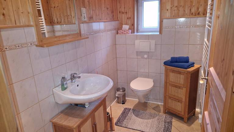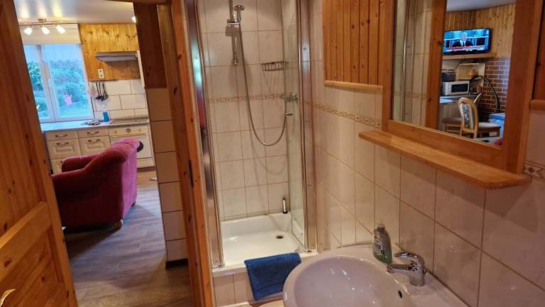 Die Ferienwohnung besteht aus einem Schlafzimmer, einem Wohnzimmer mit Flachbild-TV sowie einer gut ausgestatteten Küche mit Kühlschrank und Geschirrspüler. Ein Badezimmer mit Dusche sowie Handtücher und Bettwäsche sind ebenfalls vorhanden.