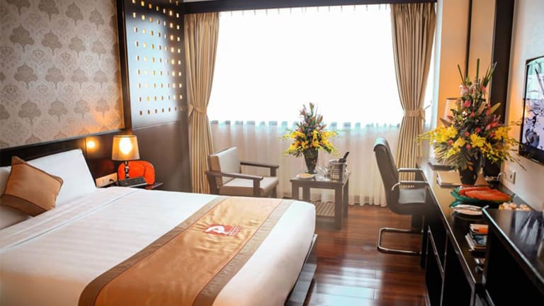 Das Hotel liegt in Ha Long, umgeben von einer reizvollen Landschaft, die eine entspannte Unterkunft bietet. Es gibt eine Gepäckaufbewahrung, einen Safe, einen Tourdesk für Ausflüge sowie Parkiermöglichkeiten, die je nach Verfügbarkeit nutzbar sind. Der Garten des Hotels bietet zusätzlichen Raum zur Erholung.