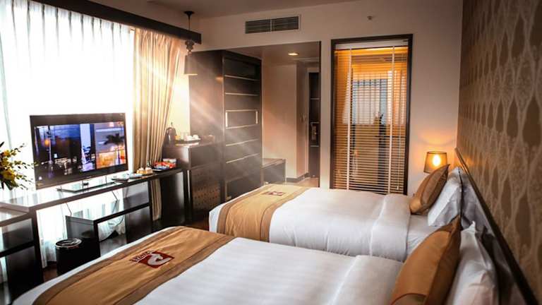 In den Zimmern des Hotels finden die Gäste eine Klimaanlage, ein Doppelbett sowie ein Bügelset vor. Für zusätzlichen Komfort sind eine Minibar, ein Schreibtisch, eine Tee-/Kaffeemaschine und moderne Unterhaltungstechnik wie TV-Gerät und DVD-Player vorhanden. Die Badezimmer sind mit einer Dusche, Haartrockner, Bademänteln und Kosmetikartikeln ausgestattet. Zustellbetten sind auf Anfrage erhältlich.