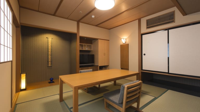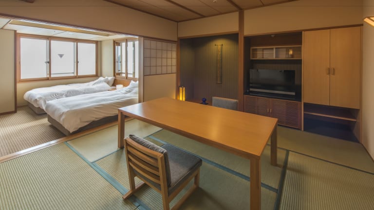 Zum Abendessen wird ein mehrgängiges japanisches Kaiseki-Menü mit regionalen Zutaten wie frischem Fisch serviert. Gäste haben die Möglichkeit, japanische Gerichte auf dem eigenen Zimmer mit Tatami-Böden zu geniessen. Es wird darum gebeten, die Unterkunft mindestens 2 Tage im Voraus über Lebensmittelallergien oder spezielle Ernährungsbedürfnisse zu informieren.