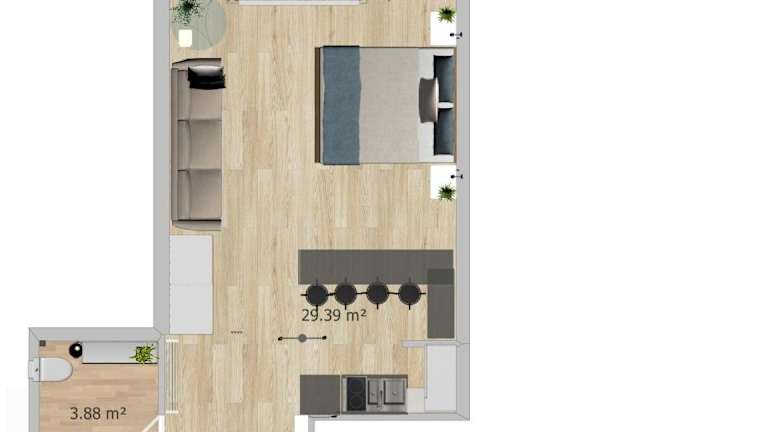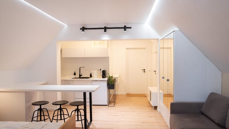 Die Ferienwohnung besteht aus einem Schlafzimmer, einem Badezimmer, einem Essbereich und einer voll ausgestatteten Küche. Ausgestattet ist die Unterkunft mit Bettwäsche, Handtüchern, einem Flachbild-TV sowie einem Balkon mit Stadtblick. Es stehen Nichtraucherzimmer zur Verfügung, und ein Babybett ist auf Anfrage möglich.