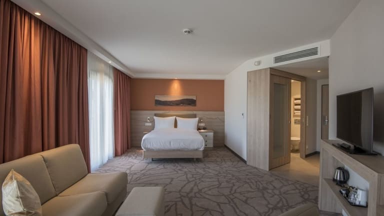 Das Hotel bietet verschiedene Verpflegungsoptionen an. Sie können zwischen einer Übernachtung ohne Verpflegung oder einer Übernachtung mit Frühstück wählen. Es gibt auch eine Snackbar und eine Bar, in denen Sie Getränke und Snacks genießen können.