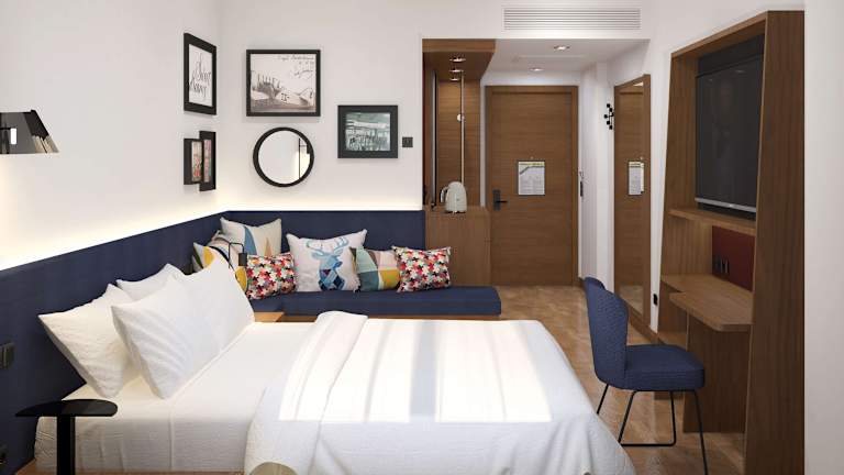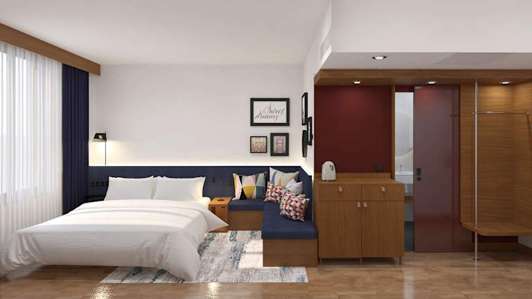 Die Zimmer sind mit Klimaanlage, Heizung, Ventilator, einem Queensizebett, Sofabett sowie Zustellbetten ausgestattet. Zur Ausstattung gehören Küchenutensilien wie Kühlschrank, Mikrowelle und Tee-/Kaffeemaschine. Jedes Zimmer hat zudem einen Safe, einen Schreibtisch, ein Telefon, einen TV mit Satelliten-/Kabelempfang, Hausschuhe, WLAN (ohne Gebühr) sowie ein Badezimmer mit Dusche und Haartrockner. Zudem stehen allergikerfreundliche Zimmer zur Verfügung.