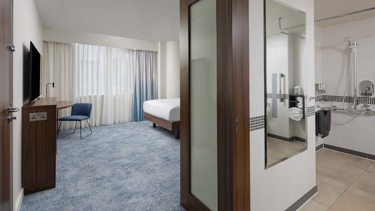 Die klimatisierten Zimmer im Hampton by Hilton London Gatwick Airport bieten modernen Komfort und sind mit einem Flachbild-TV, einem Wecker, einem Schreibtisch, einem Laptopsafe, einem Bügeleisen und Kaffee- und Teezubereitungsmöglichkeiten ausgestattet. Jedes Zimmer verfügt über ein eigenes Bad mit Dusche, WC und Haartrockner. Einige Zimmer bieten auch eine Badewanne.