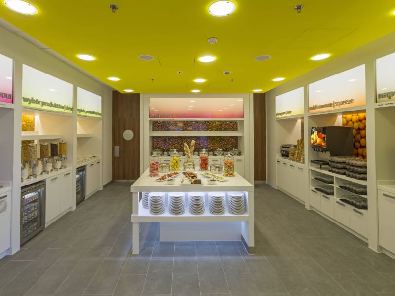 Die gastronomischen Einrichtungen umfassen ein Restaurant, ein Café und eine Bar. Gäste können sich auf ein reichhaltiges Frühstücksbuffet mit warmen Speisen freuen. Auch Halbpension und Vollpension werden angeboten. Auf Wunsch werden glutenfreie, vegetarische Gerichte sowie Kindermenüs zubereitet. An der Hotelbar sind rund um die Uhr Snacks und alkoholfreie Getränke erhältlich.