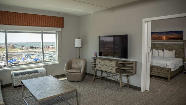 Die Unterkunft Hampton Inn & Suites Erie Bayfront liegt in der Nähe des Erie Maritime Museums, weniger als 200 m entfernt, sowie in der Nähe des Aussichtsturms Bicentennial Tower Port Erie, etwa 600 m entfernt. Zu den weiteren interessanten Orten in der Umgebung zählen das Erie Art Museum, die Erie County Public Library und die St. Patrick Church. Der nächstgelegene Flughafen ist der Flughafen Erie, welcher in einer Entfernung von 9 km zu finden ist.