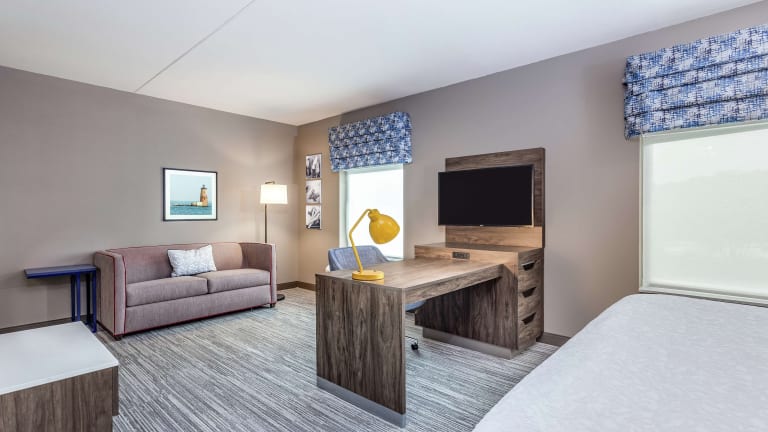 Hampton Inn & Suites Kittery ist ein Nichtraucherhotel mit einer rund um die Uhr besetzten Rezeption und einem Businesscenter. Es bietet eine Gemeinschaftslounge sowie einen Innenpool und sorgt für eine heimelige Atmosphäre.