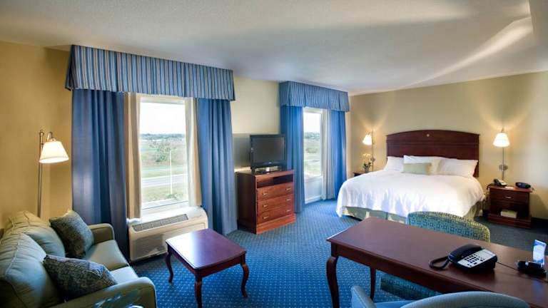 Die Zimmer sind mit einer Klimaanlage und einer individuell steuerbaren Heizung ausgestattet. Jedes Zimmer bietet ein Kingsizebett sowie ein Sofabett, und Zustellbetten können auf Anfrage bereitgestellt werden. Weiterhin finden Gäste einen Schreibtisch, einen Kühlschrank, eine Mikrowelle, eine Tee-/Kaffeemaschine und ein Bügelset. Die Zimmer verfügen über einen Telefonanschluss mit Direktwahl, ein TV-Gerät mit Satelliten-/Kabelempfang und WLAN (ohne Gebühr). Die Badezimmer sind mit einer Dusche und einer Badewanne sowie Haartrockner und Kosmetikartikeln ausgestattet. Rollstuhlgerechte Zimmer sind buchbar. Das Hotel bietet Familien- und Nichtraucherzimmer.