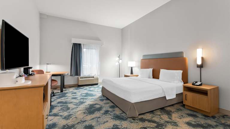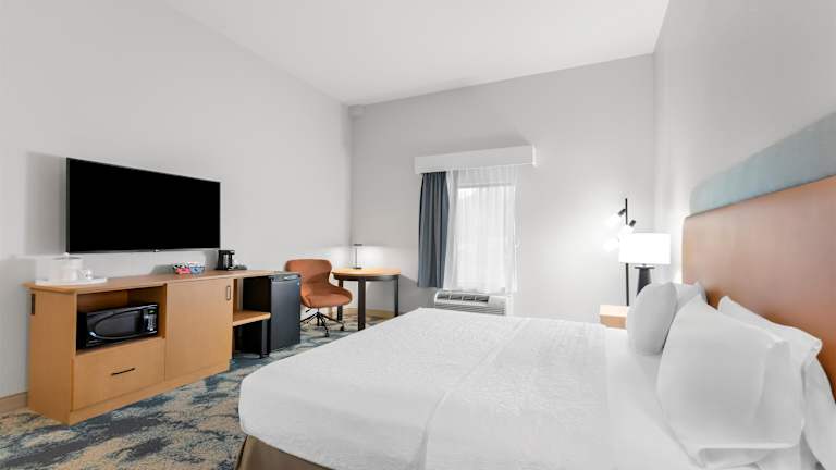 Das Hampton Inn & Suites Pensacola/I-10 Pine Forest Road bietet seinen Gästen 75 Zimmer, die mit einem Aufzug erreichbar sind. Zu den Annehmlichkeiten gehören eine 24-Stunden-Rezeption, eine Gepäckaufbewahrung, ein Safe, ein Geldautomat sowie ein Getränkeautomat. Das Hotel ist mit behindertengerechten Einrichtungen ausgestattet und bietet eine zeitgemässe Ausstattung, darunter einen TV-Raum sowie eine Sonnenterrasse mit Pools (drinnen und draussen).