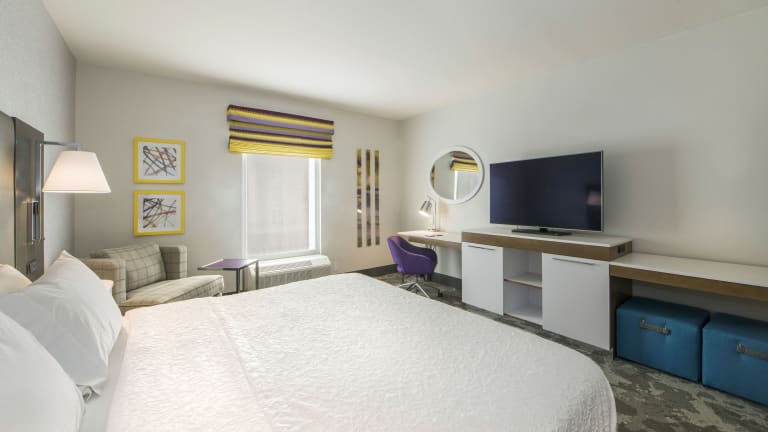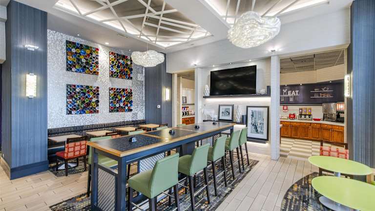 Das Hampton Inn & Suites Raleigh-Durham Airport-Brier Creek bietet eine heimelige Atmosphäre mit modernem Design und 135 Zimmern über 6 Stockwerke. Das freundliche Personal an der Rezeption ist 24 Stunden für die Gäste da und kümmert sich um ihre Anliegen. Zu den Annehmlichkeiten gehören ein Aufzug, ein Kamin, ein Gepäckraum, ein Geldautomat, ein Getränkeautomat sowie behindertengerechte Einrichtungen. Gäste können in einer Garage (gegen Gebühr) oder auf einem kostenlosen Parkplatz parkieren. Das Hotel stellt zudem einen eigenen Shuttlebus für Transfers zur Verfügung.