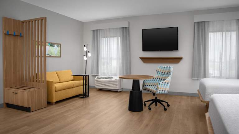 Die Zimmer sind ausgestattet mit einer Klimaanlage, Heizung, einem Kühlschrank, einer Mikrowelle sowie einer Tee-/Kaffeemaschine. Ein Schreibtisch, ein Safe, eine Minibar, Sat-TV und kostenfreies Wifi stehen ebenfalls zur Verfügung. Die Badezimmer verfügen über eine Dusche und eine Badewanne sowie kostenlose Pflegeprodukte. Rollstuhlgerechte Zimmer mit barrierefreiem Badezimmer sind ebenfalls verfügbar. Die Unterkunft umfasst Doppelzimmer, Familienzimmer und Nichtraucherzimmer.