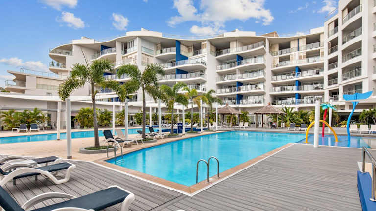 Hamptons Meets Hervey Bay In Upmarket Resort - Ocean Views besticht durch eine attraktive Lage mit Meerblick. Es werden kostenlose Velo zur Verfügung gestellt, zusätzlich gibt es einen Aussenpool, ein Restaurant sowie eine Bar. Die Unterkunft ist klimatisiert und bietet einen Privatparkplatz sowie kostenloses Wifi.