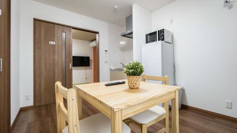 Jede Wohneinheit verfügt über eine voll ausgestattete Küche mit einem Esstisch, sodass Gäste ihre eigenen Mahlzeiten zubereiten können. Keine weiteren Verpflegungsmöglichkeiten vorhanden.