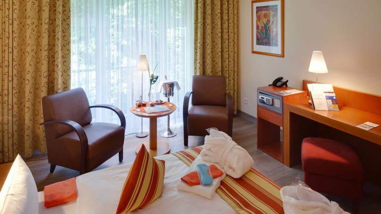 Genießen Sie das wundervolle Ambiente unserer 71 Zimmer und Suiten. Diese bieten Ihnen einen Blick Richtung Süden zur Innenstadt, ins Grüne oder zum Zwischenahner Meer. Die Zimmer sind ausgestattet mit Dusche, Flatscreen TV, Telefon, Safe und WLAN. Falls Sie sich ein Plus an Komfort sichern wollen, können Sie hier ebenso behindertenfreundliche Zimmer buchen.