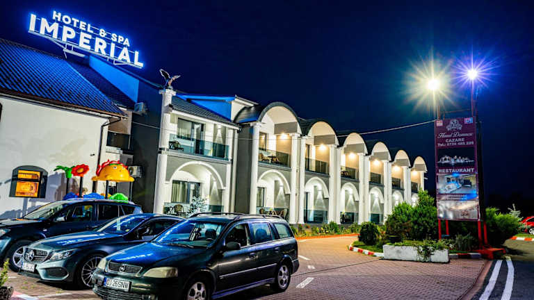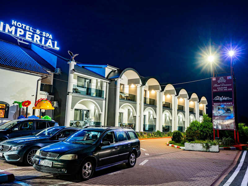 Hanul Domnesc Imperial Hotel & SPA bietet Übernachtungsmöglichkeiten in einer ruhigen Umgebung, welche mit einer Terrasse und einem kostenlosen Privatparkplatz ausgestattet ist. Die Unterkunft zeichnet sich durch ein familientaugliches Angebot aus, unter anderem mit einem Kinderclub, und bietet moderne Annehmlichkeiten wie gratis WLAN.
