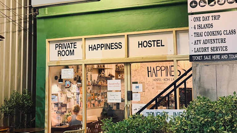 Das Happiness Hostel bietet Nichtraucherzimmer und eine einladende Gemeinschaftslounge. Gästen stehen kostenloses Wifi und eine Bar zur Verfügung. Die Unterkunft hat eine Terrasse mit Gartenblick in jedem Zimmer und beachtet die Privatsphäre und das Wohlbefinden aller Gäste. Das Hostel ist für jüngere Gäste und Haustiere nicht geeignet.