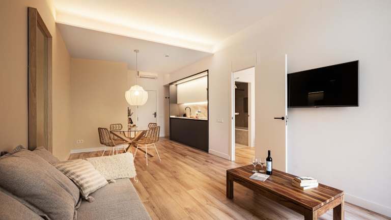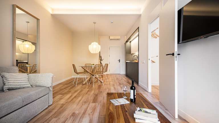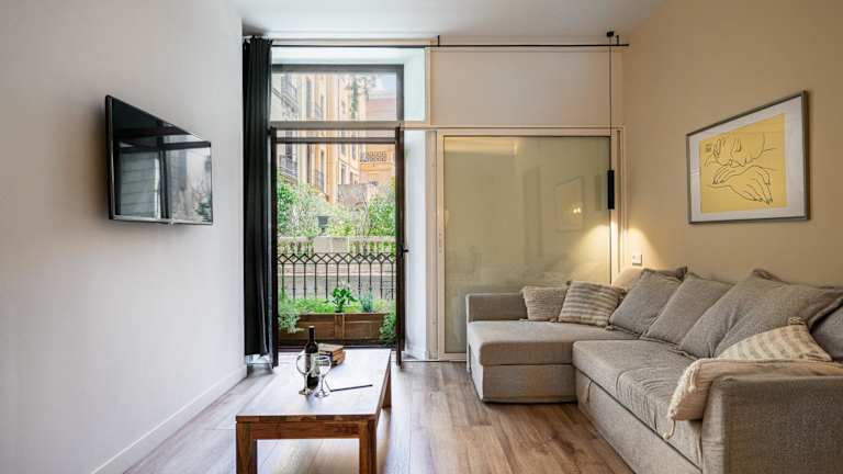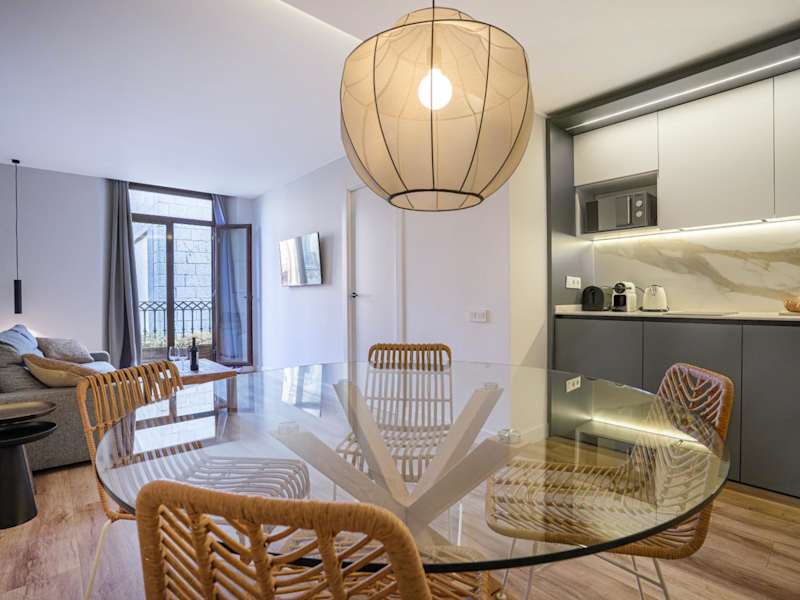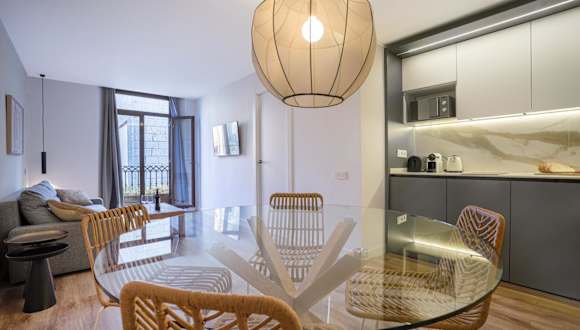 Die Happy Apartments befinden sich im Stadtteil Raval in Barcelona, gegenüber Gaudís Palau Güell und nur 50 m vom Boulevard La Rambla entfernt. In der näheren Umgebung gibt es zahlreiche Geschäfte, Bars, Cafés und Restaurants. Der U-Bahnhof Liceu ist 400 m entfernt, während die Markthallen des Mercat de la Boqueria in etwa 5 Gehminuten zu erreichen sind. Die Plaça de Catalunya, von wo Busse zum Flughafen abfahren, liegt einen 10-minütigen Spaziergang entfernt.