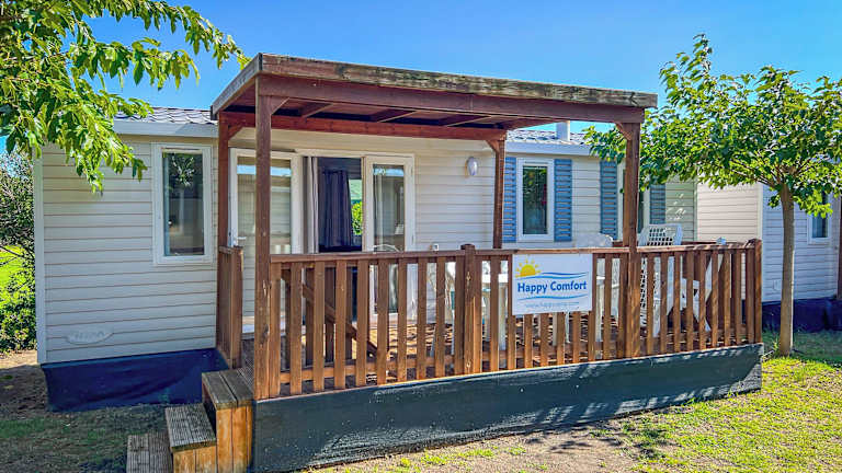 Happy Camp Mobile Homes bietet Übernachtungsmöglichkeiten in mobilen Unterkünften mit gemütlicher Terrasse. Die Anlage verfügt über einen saisonalen Aussenpool, ein Restaurant sowie eine Bar, und es sind verschiedene Freizeitangebote in unmittelbarer Nähe vorhanden.