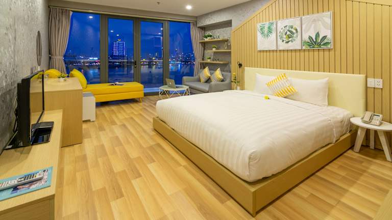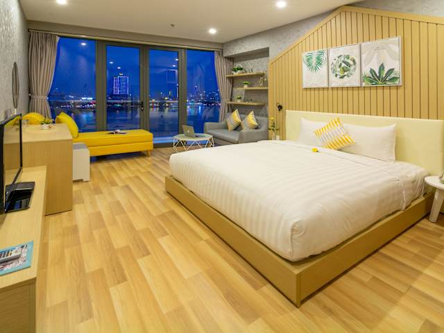 Das Happy Day Riverside Hotel & Spa Danang by Haviland befindet sich im Zentrum von Da Nang, nur 2 Gehminuten vom beliebten Han Markt und etwa 2 km vom internationalen Flughafen Da Nang entfernt. Die Dragon Bridge und die Kathedrale von Danang sind in 5 Minuten zu Fuss erreichbar. In der Nähe liegen auch der öffentliche Strand Pham Van Dong und die Marmorberge, die jeweils 3 km und 10 km entfernt sind.