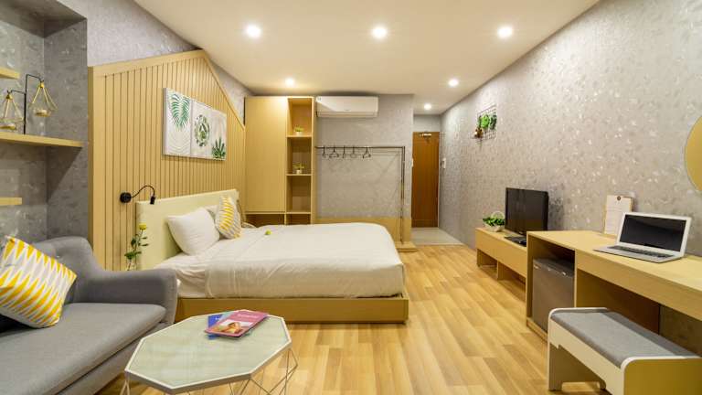 Die Zimmer sind mit Holzfussböden ausgestattet, klimatisiert und verfügen über einen Flachbild-TV mit Kabelkanälen, eine Minibar sowie einen Kleiderschrank. Das eigene Badezimmer ist mit Warmwasserduschen und Toilettenartikeln ausgestattet. Täglich erhalten Gäste zwei kostenlose Flaschen Wasser.