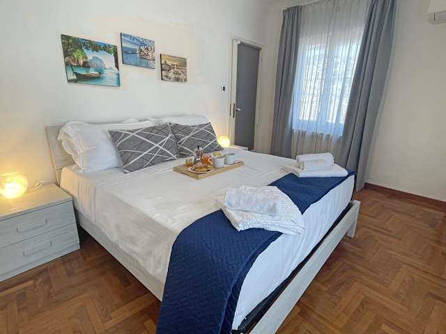 Die Ferienwohnung verfügt über ein separiertes Schlafzimmer, ein Wohnzimmer, eine voll ausgestattete Küche sowie ein Badezimmer. Zur Ausstattung gehören zudem eine Klimaanlage und ein Flachbild-TV. Gäste haben Zugang zu einem Balkon und einer Waschmaschine.