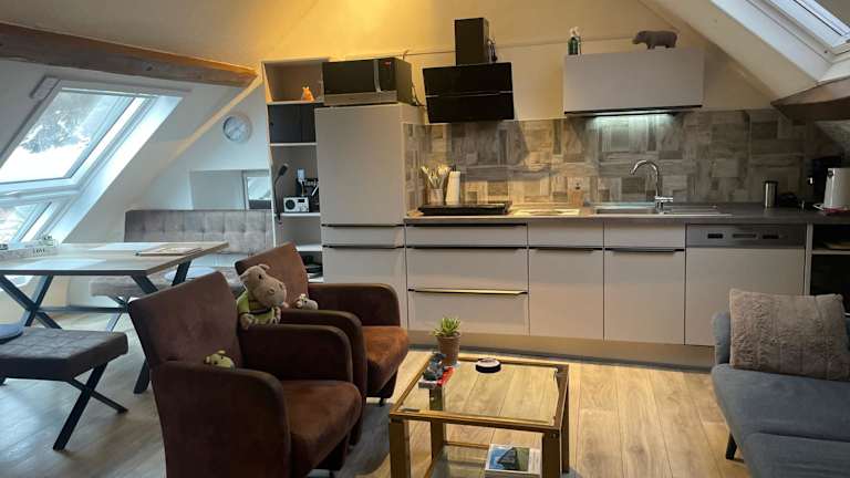 Die Apartments im Happy Hippo Haus sind geräumig und komfortabel eingerichtet. Sie verfügen über zwei Schlafzimmer, ein Wohnzimmer und eine gut ausgestattete Küche. Der Flachbild-Sat-TV sorgt für Unterhaltung und die Terrasse bietet einen herrlichen Blick auf die Stadt. Handtücher und Bettwäsche werden gestellt, um den Gästen einen angenehmen Aufenthalt zu ermöglichen.