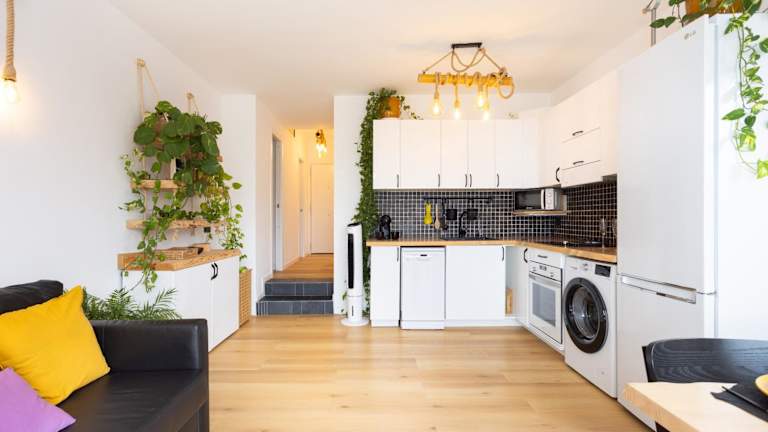 Die Ferienwohnung bietet zwei Schlafzimmer sowie eine voll ausgestattete Küche mit Kühlschrank und Geschirrspüler. Die Unterkunft eignet sich gut für Familien und hat gute Bequemlichkeiten.