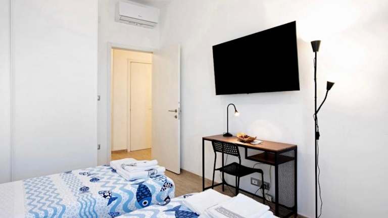 Die Ferienwohnung besteht aus zwei Schlafzimmern, einem Wohnzimmer und einem Badezimmer mit Bidet und Dusche. Handtücher und Bettwäsche werden zur Verfügung gestellt.