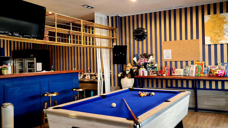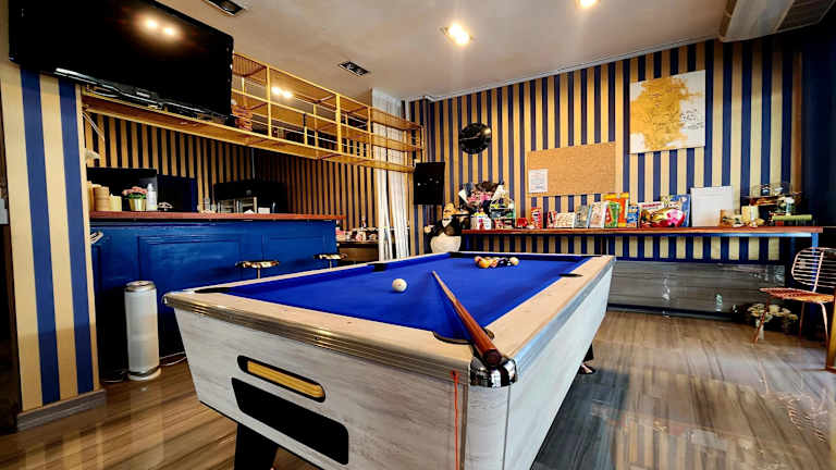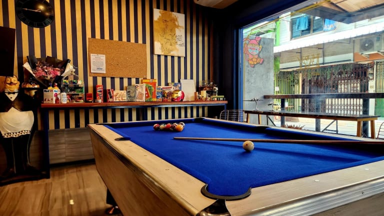 An der Unterkunft Happy Station Bangkok können Gäste Billard spielen.