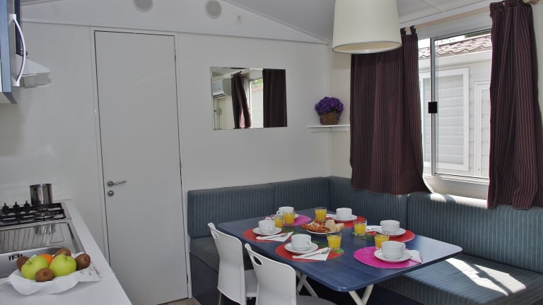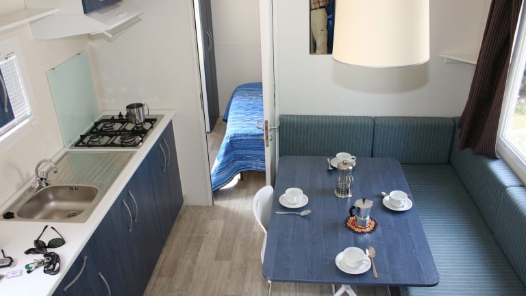 Die mobile Homes verfügen über eine voll ausgestattete Küchenzeile sowie ein eigenes Badezimmer.