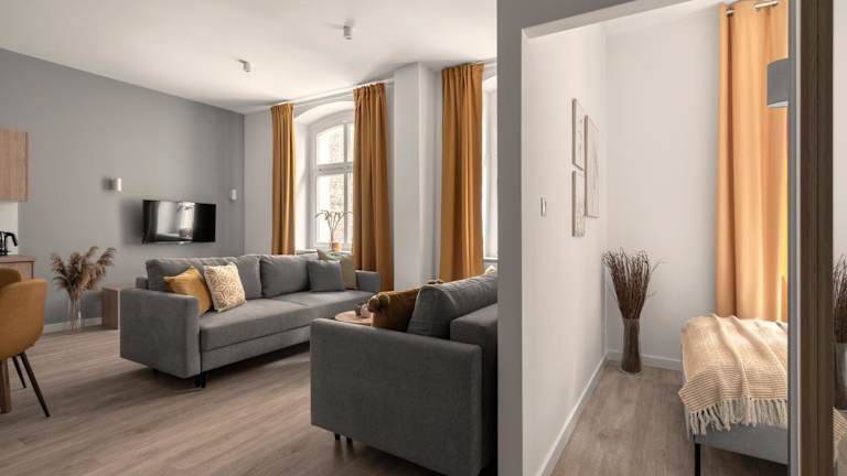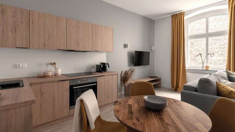 Jede Wohneinheit ist mit einer Küche ausgestattet, die einen Kühlschrank, einen Geschirrspüler, eine Herdplatte, eine Kaffeemaschine und einen Wasserkocher beinhaltet. Zudem verfügt sie über einen Kabel Flachbild-TV, Bügelmöglichkeiten, einen Kleiderschrank und einen Sitzbereich mit einem Schlafsofa.