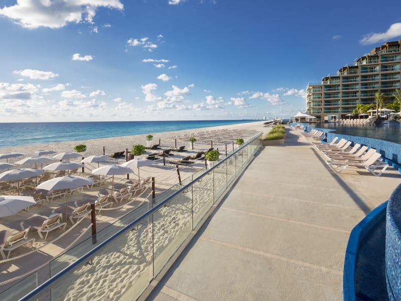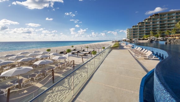 Direkt am feinsandigen, leicht abfallenden Strand. Im Zentrum der berühmten Hotelzone Cancuns mit zahlreichen Einkaufszentren, Bars und Restaurants. Die Transferzeit vom Flughafen Cancun beträgt ca. 30 Minuten (15 km). Entfernungen • Flughafen: Cancun Airport ca. 15 km, Fahrzeit: ca. 30 Minuten (Die Transferzeit kann hiervon abweichen). • Strand direkt • Golfplatz: Riviera Cancun Golf Club ca. 11 km, Fahrzeit: ca. 20 Minuten • Bus: Hotel Zone Bus 24h direkt • Stadtzentrum/Ortszentrum: Cancun City Downtown ca. 15 km, Fahrzeit: ca. 40 Minuten • Bars und Clubs: Night clubs ca. 5 km, Fahrzeit: ca. 5 Minuten