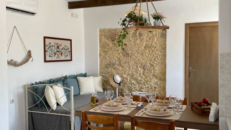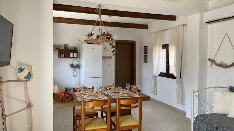 Haroupia bietet Übernachtungsmöglichkeiten in einem komfortablen Ferienhaus mit herrlichem Bergblick. Die Unterkunft verfügt über eine Terrasse sowie eine Veranda/Pati, die zum Entspannen einladen. Ein Garten und eine kostenlose Parkiermöglichkeit stehen den Gästen ebenfalls zur Verfügung.